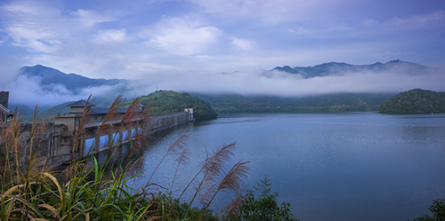 皎口水庫(kù)地處寧波市奉化江支流樟溪上游,大小兩皎溪匯合口——蜜巖村,是一座以防洪、灌溉為主,結(jié)合供水、發(fā)電、防洪等綜合利用的大(Ⅱ)型水庫(kù),保護(hù)壩址以下海曙區(qū)章水鎮(zhèn)、鄞江鎮(zhèn)、寧波部分地區(qū)的60余萬(wàn)人口,20余萬(wàn)畝農(nóng)田,以及寧波櫟社機(jī)場(chǎng)、甬金、甬臺(tái)溫高速公路等。水庫(kù)集雨面積259平方公里,總庫(kù)容1.2005億立方米。水庫(kù)壩高68米,壩頂長(zhǎng)度407米,壩頂寬10米,主體結(jié)構(gòu)為漿砌塊石混凝土重力壩。水庫(kù)電站總裝機(jī)容量3×1600千瓦,多年平均發(fā)電量1264萬(wàn)千瓦時(shí),每天可向?qū)幉ㄊ袇^(qū)供應(yīng)優(yōu)質(zhì)原水40-50萬(wàn)噸。水源主供寧波毛家坪水廠。
